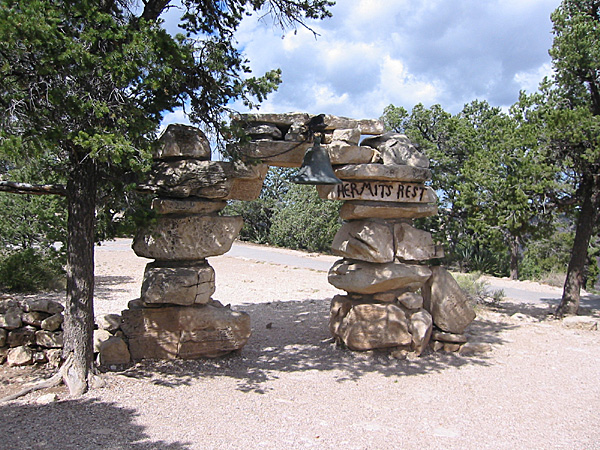 We rode the shuttle to Mohave Point, where we were able to see rafts entering a large rapid down on the Colorado River. Then we took the shuttle to The Abyss, where it was very windy. Then we rode the rest of the way out to Hermit’s Rest. However, we could not spend much time there because we had not checked out, and check out time was 12:00 Noon (11:00 a.m. AZT). We decided that we had better catch the next shuttle back, which would be the one we rode in on, but there would be a ten minute delay before returning to the Village.