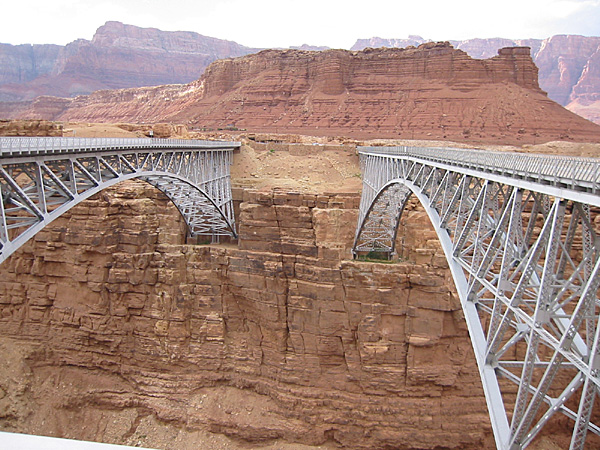 We stopped at Navajo Bridge over the Colorado River as it passes through Marble Canyon. Jurisdiction is kind of confusing in this area. I believe the bridge is within the boundaries of Glen Canyon National Recreation Area, while the river is within Grand Canyon National Park. But the Vermillion Cliffs National Monument also meets the other two in this area. We walked out onto the bridge and saw a string of rafts, kayaks, and dories drifting down the river.